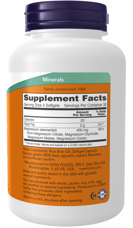 Citrato de Magnésio, 180 Softgels Now foods