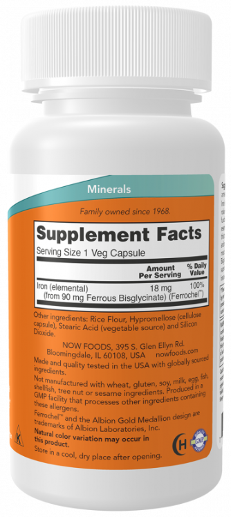 Iron, 18 mg, 120 Veg Capsules Now foods
