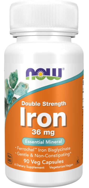 Iron, Double Strength, 36 mg, 90 Veg Capsules Now foods