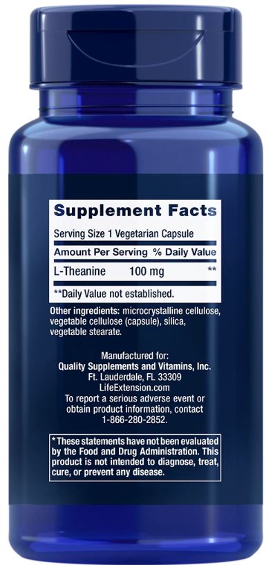 L-Theanine, 60 Vegetarian Capsules (100 mg per Capsule) Life extension
