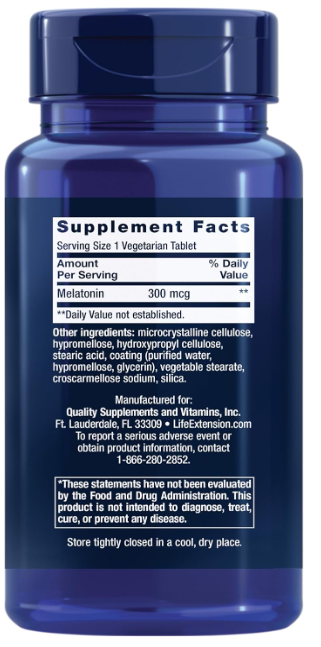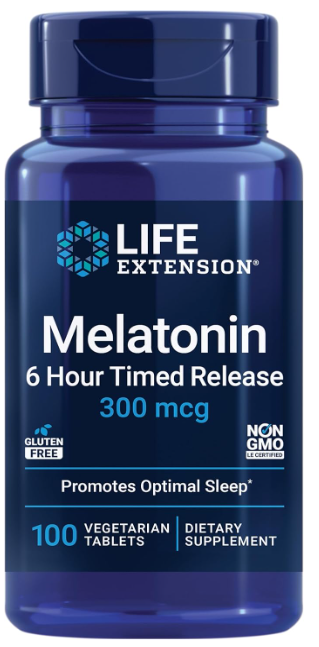 Melatonin, 6 Hour Timed Release, 300 mcg, 100 Vegetarian Tablets Life Extension