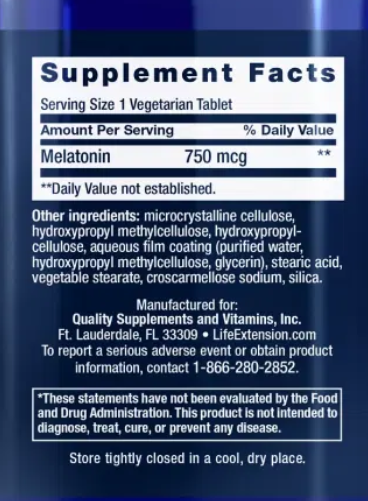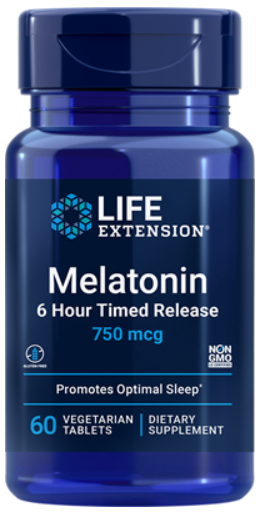 Melatonin, 6 Hour Timed Release, 750 mcg, 60 Vegetarian Tablets Life Extension