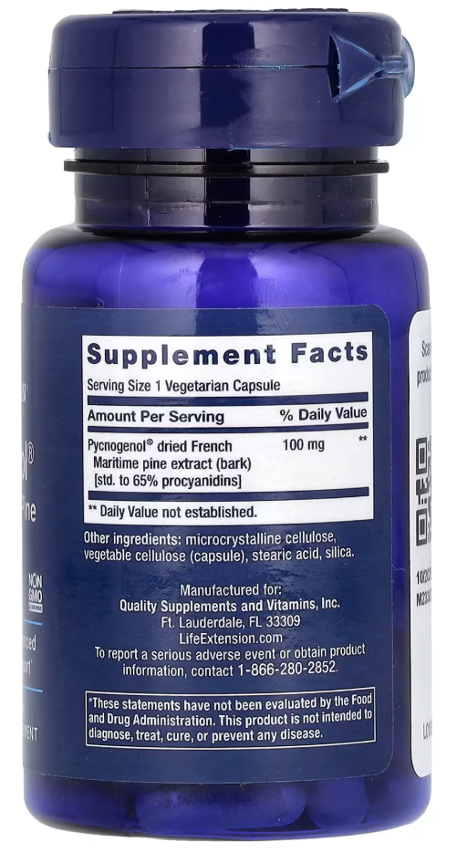 Pycnogenol, French Maritime Pine Bark Extract, 100 mg, 60 Vegetarian Capsules Life Extension