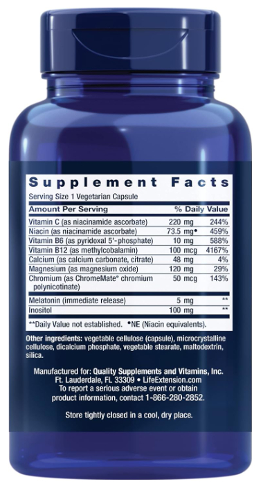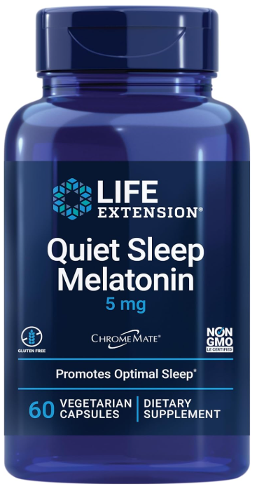 Quiet Sleep Melatonin 5mg, 60 Vegetarian Capsules Life Extension