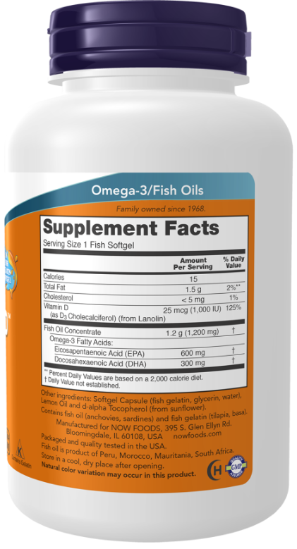 Ultra Omega 3-D, 600 EPA / 300 DHA, 180 Fish Softgels Now foods