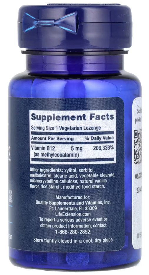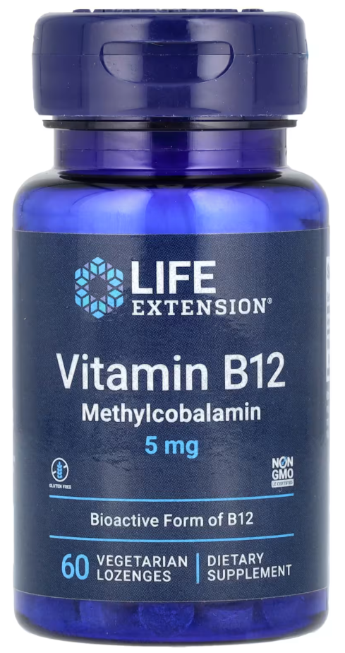Vitamin B12 Methylcobalamin, 5 mg, 60 Vegetarian Lozenges Life Extension