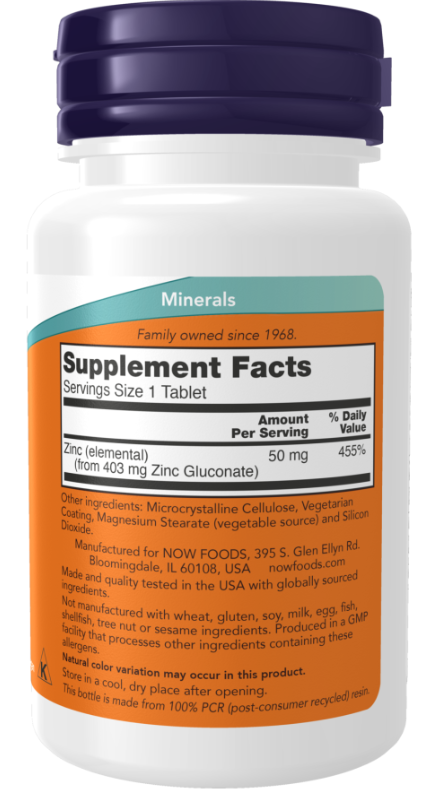 Zinc 50 mg 250 Tablets Now foods